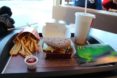 ハンバーガー、ポテト(Mサイズくらいあった)、コーラ 3.8ユーロ