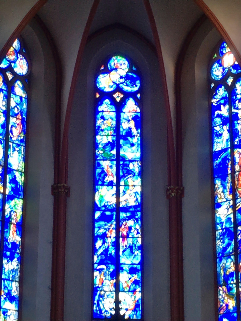 教会は本当に静寂な空間。青のステンドグラスは壮観。一見の価値あり。