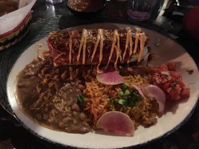ホリデーシーズンの週末だったので30分ほどまちましたが、待っている間もマルガリータを飲みながら生演奏を楽しむ事ができました。冬でもストーブつけてテラス席で食事でき、雰囲気も抜群です!かなり大きなポーションなので持ち帰るかシェアしてもよいと思います。