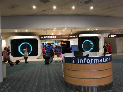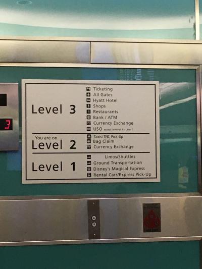 空港に着いた途端、ディズニーにきたー!と感じます。ディズニー色が強い空港です。日本からの直行便がないのでここで入国審査を受ける方は少ないと思います。到着するとスペースシャトルをイメージしたトラムステーションへ行きメインターミナルに移動。荷物を受け取ったらレベル1にいくとシャトルバスなどに乗れます。マジカルエクスプレスは専用のカウンターがあります。