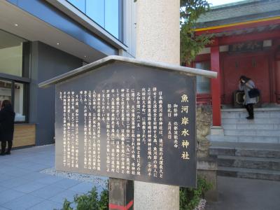 JR御茶ノ水駅からのら神田明神に向かうと、そこにある魚河岸水神社は日本橋に魚市場があった江戸時代、徳川家の武運長久と大漁安全を祈願して市場の守護神大市場交易神を神田明神内に祀ったという歴史ある神社です。神田明神氏子ゆかりの末社です。