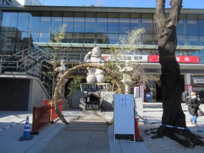 神田明神・随神門をくぐって左側にだいこく様尊像があります。。福徳円満、縁結びのご利益を授かります。神田明神だいこく様尊像は高さが6.6メートル(重さは30トン)石造りとしては日本一であります。神田明神文化交流館前にあります。
