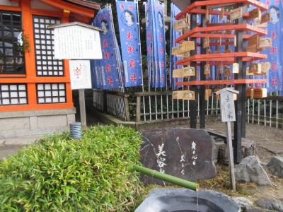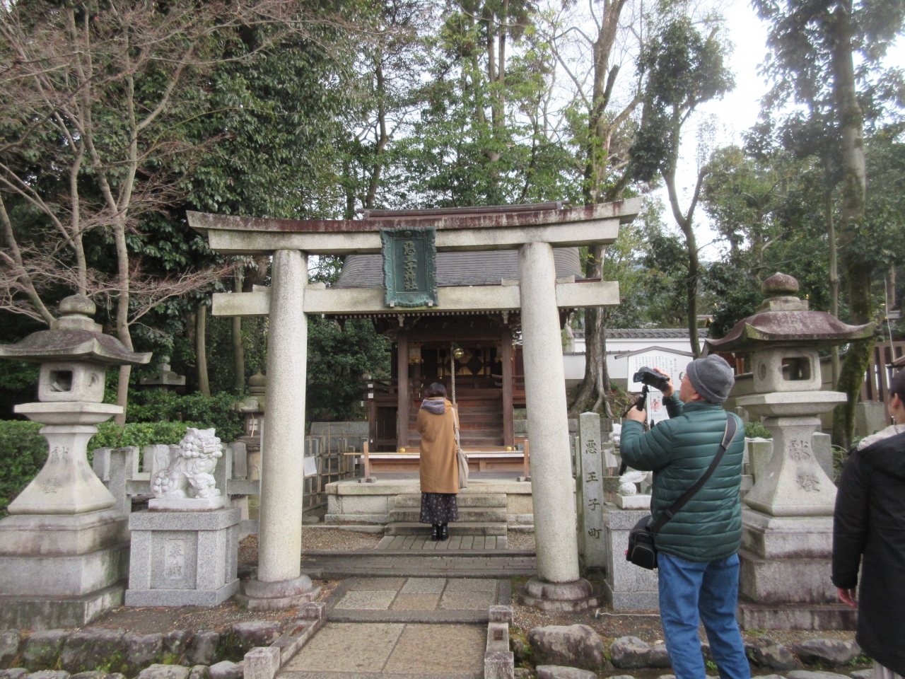 北野天満宮前でバスをおりると、今出川通りの道路を隔てて巨大で、懐かしい北野天満宮の鳥居が迎えてくれます。ここを過ぎると北野天満宮に続く参道です。本殿まではかなり歩かないといけません。孫の大学合格のお礼だし、頑張りました