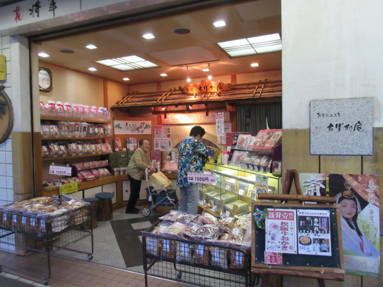 松阪駅を降りて、すぐ松阪駅前商店街です、菓匠たばね庵はその中ほどです。おかきとかあられとか米菓子のお店、老舗です。旅の途中、おかきをお土産に買いました。しっとりといい味を出していて、上げたら喜んでくれました。