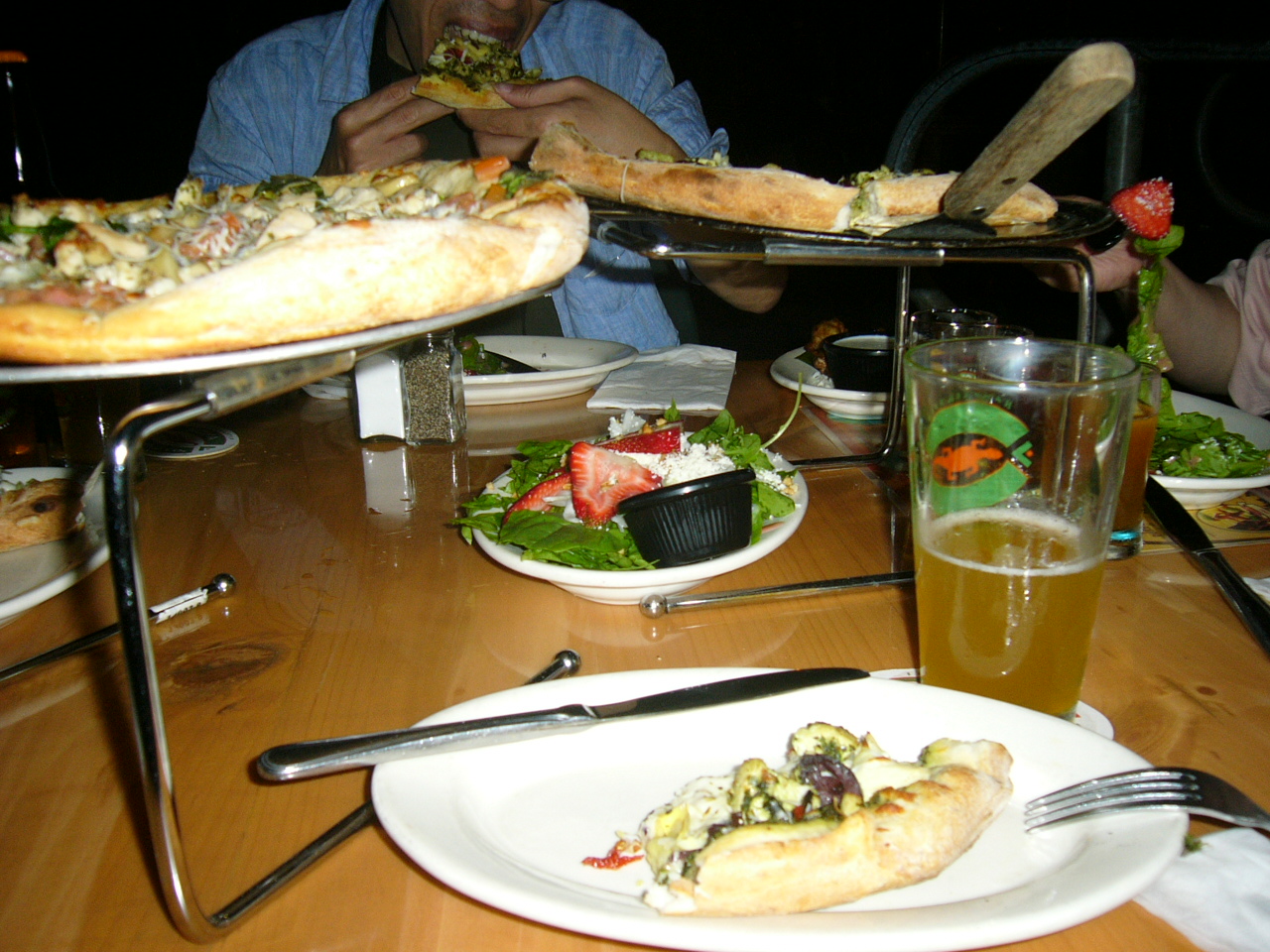 夜に4人(女3、男1)で利用。サラダ、チキンフライ、ピザMサイズ2枚をシェアし、各自がビールを注文。お腹いっぱいになり味も大満足で1人当たり25ドルくらい。お値打ちなり。