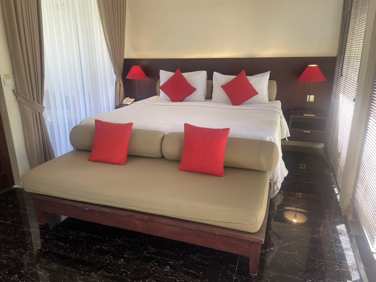 サヌールの北エリアのビーチ沿いの★4老舗ホテルです。客室は、デラックスとバンガローの2タイプで、今回の宿泊ではバンガローにアップグレードされました。室内、バスルーム共、清潔で、広々していました。設備的には、電源コンセントが少ない、セイフティーボックスの使い方が判り難いなど、気になる点はありました。ホテルの設備は、リゾート感溢れるプールが4か所、レストランは、海沿いに広がるお洒落な雰囲気。朝食ビッフェは、料理は普通のレベルですが、海を眺めながら気持ち良く頂けました。私的にはトレーニング・ジムがあれば良いなと思いました。今回はアゴダ経由で割安な料金で予約。尚、2026年1月頃より、大規模リニューアル工事が予定されている模様。