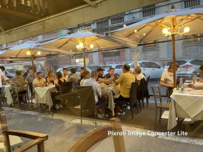 ベットーヤ・アトランティコホテルの並びにあるレストランです。18時頃にウォークインで訪問、アウトサイドにすぐに案内してして頂きました。店内も広くキャパが大きい様でした。それでも食べ終える頃には行列ができていて、この辺りでは人気がある様でした。料理はアマトリチャーナとピスタチオを使ったパスタ、ワインはピノグリを注文。味は水準以上で、料金はパスタが20ユーロ前後、ワインが30ユーロからと標準的、そして雰囲気は正しくローマでこれはフリーです!テルミニ駅周辺で宿を取る方は多いと思いますが、味、雰囲気、料金ともお勧めのできるレストランかと思います。