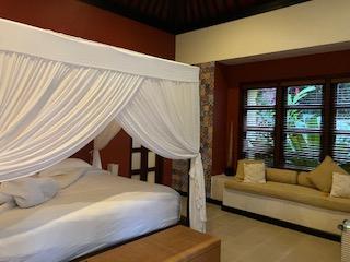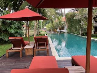 全6室の小さなリゾートで、プライベート感満載。Villaは十分な広さがあり、家具、部屋の色彩のセンスが良くお洒落。朝食、アフタヌーンティーはプライベートテラスでサービスされる。テラスの目の前にはプール、ライスフィールドが開けている。ウブド中心部に位置しているが、Villaまでの途中に狭い急坂があるので、無料のシャトル・サービスの利用が便利。WhatsAppで連絡すれば、10分くらいで王宮前でPICK UPしてくれます。@2万円/泊程度なので機会があればまた宿泊したい。