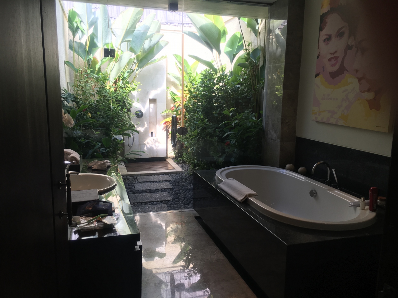 家族4人で、2ベッドルームに宿泊しました。プール、LDK、ベッドルームも大変広くストレス・フリーで、清潔感も充分でした。ベッドルームは、キングベッドルームとツインベッドルームで、使い易い。各部屋にバスルーム、屋外シャワーがあり、プールにもシャワー、トイレがあります。LDKは、食器等も揃っていて自炊も可能の様。場所は、サヌール北部、シンドゥー市場から、5~6分歩いた住宅街の中にありますが、サヌール内は送迎サービスがあるので不便は感じません。併設のレストランのレベルも高く、雰囲気も良い。水曜日の夜にはバリ舞踊のディナーある様です。朝食は、4種類の中からチョイスで、レストランでもヴィラ内でもOKで、美味しい。アフタヌーンティーのサービスもありました。ジムも併設されています。設備、サービス、雰囲気とも素晴らしく、4人家族での利用であればコスパも良く、大変満足度の高い滞在となりました。是非、再訪したいと思いました。