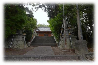 石段中ほどに一対の狛犬が安置されていますが、常夜灯含めて倒壊防止対策が...