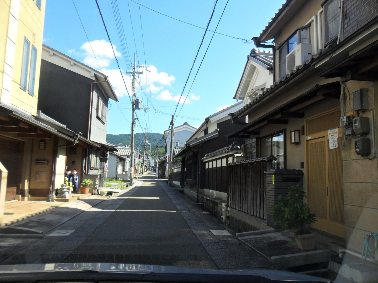 道を間違えて偶然に入り込んだ路地です。レンタルのコンパクトカーだったのですが、やっと通れるくらいの道幅なので、他の車は見かけませんでした。当然駐車場を用意してあるような店はなく、本当にそぞろ歩きに向いているレトロな路地でした。