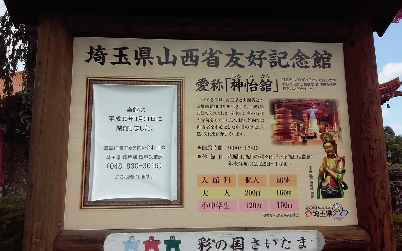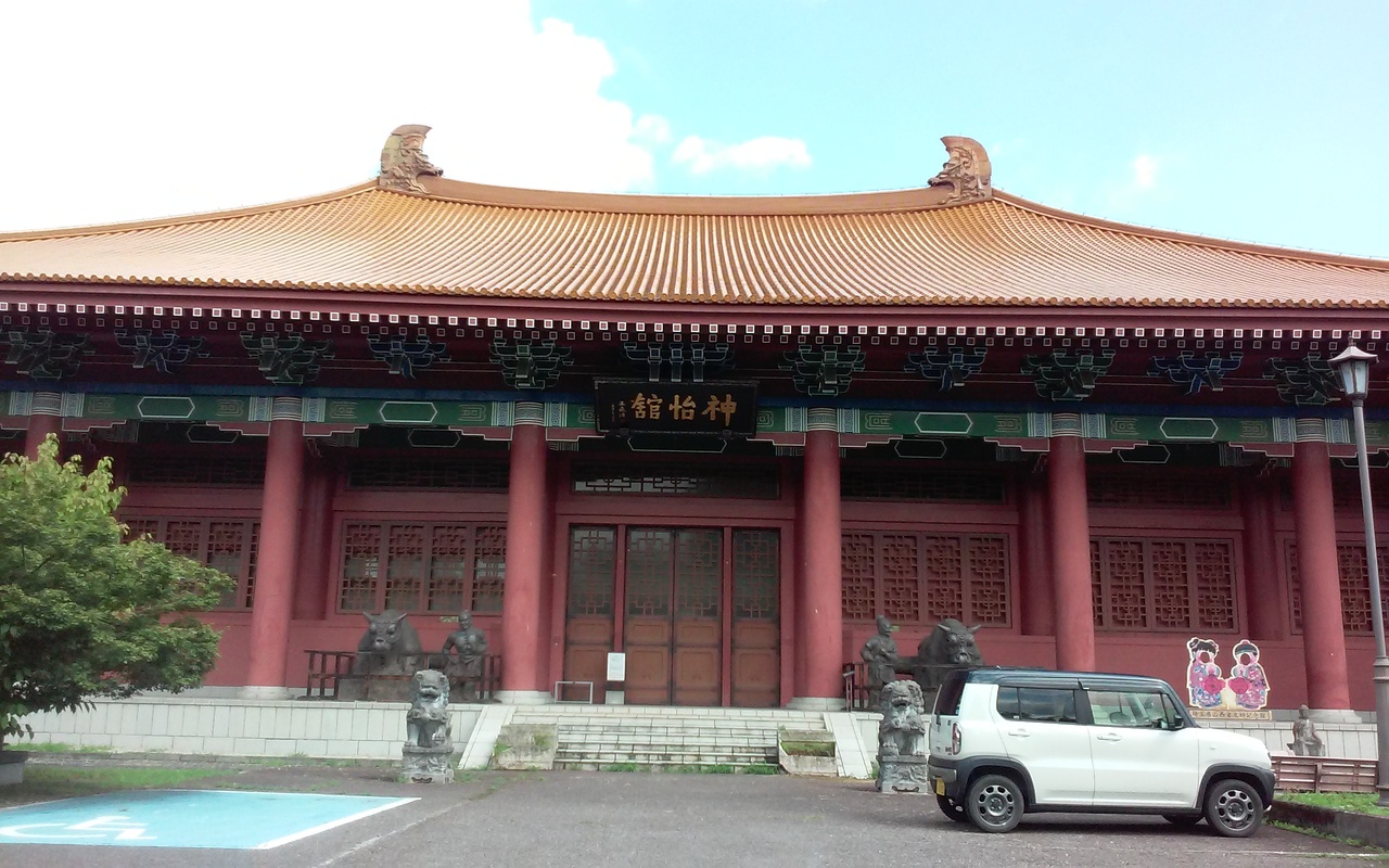 国民宿舎の両神山荘に宿泊して、帰ろうとしたときに隣に建っていた立派な建物に気がつき行って見たら、今年の春に閉鎖されたと書いてあって見学はできませんでした。いかにも中国風の作りで、壮大で庭も中国風。残念でした。