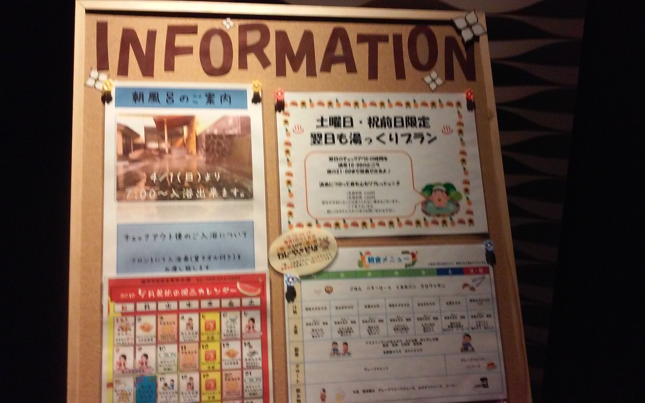 今までは朝風呂に入れなかったけど、今年の4月から入れるようになりました。ありがたいことです。また温泉棟の2階が女性専用フィットネスになったようです。これは最近の傾向で、どこも若い女性をターゲットにし始めたのかもしれません。