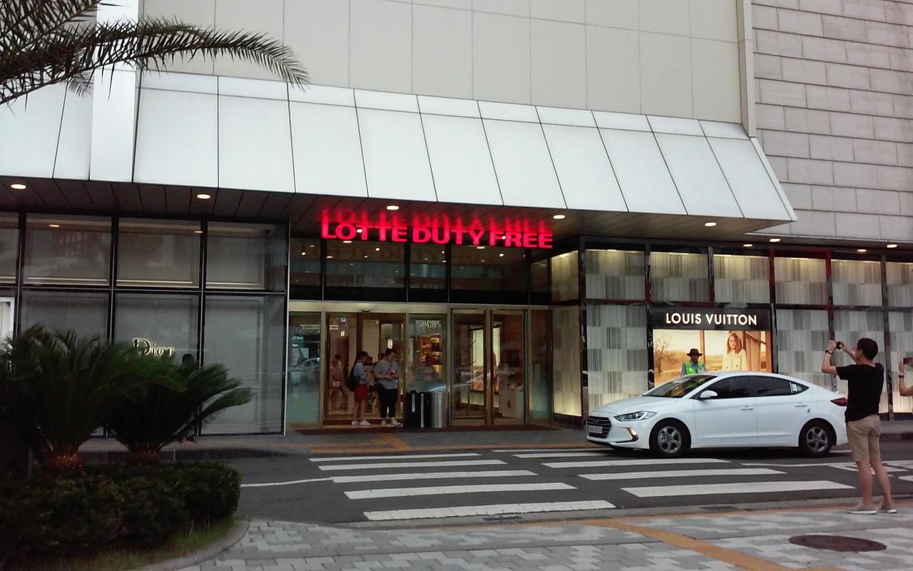 交差点の前にあるので目につきます。大型のバスが停まるスペースがあるので団体客も来店出来ます。この免税店の屋上が隣のCity ホテルの屋外プールと庭園です。お客は若い世代、特に中国人が多いように見受けられました。