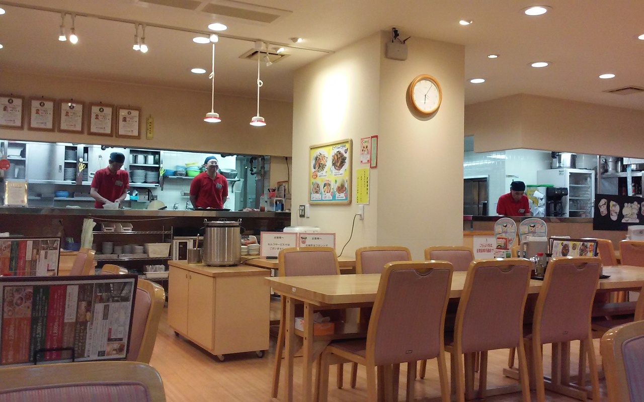 のどかな田園風景の中で見つけました。日曜日なので家族連れが多かったです。駐車場は広くはありませんが、店も大きくはないので満杯ということはなかったです。面白かったのは、ホールで働いていたのが、若い男性と中年(男の初老?)スタッフでした。