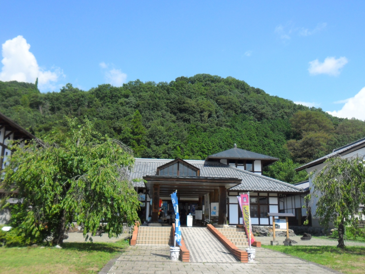 老神温泉に行く途中で寄りました。大きな木陰の、さらに木の下にはミスト。日帰り温泉やドッグランもありました。駐車場は広くはありませんが、平日だったので十分でした。国道120号から少し入った場所ですが、交差点名が道の駅白沢なのですぐ分かります。