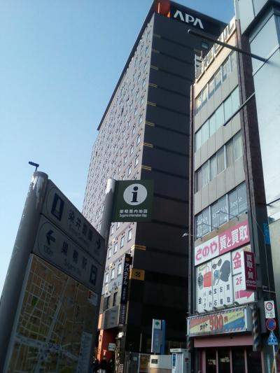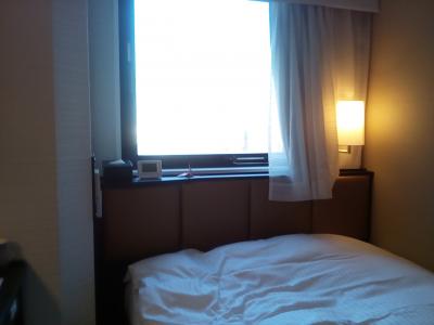 わかりずらい場所ですが、バスタのタクシー乗り場から900円で着きました。入り口は純日本風の造り。フロントも同様ですが、照明がちょっと暗い。客室にはトイレとシャワー室があって、洗面台は部屋の中に。18階の展望大浴場からの眺めが最高。写真は浴場隣のお休み所で撮ったものです。