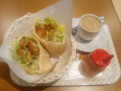 ホームから上がってトイレ休憩の後、次の電車に乗るときに一息つける便利な店です。入り口のカウンター前の席は狭いし座席数も少ないけれど、奥はけっこうひろびろしています。パネルも設置してあります。軽食の他にお菓子も。