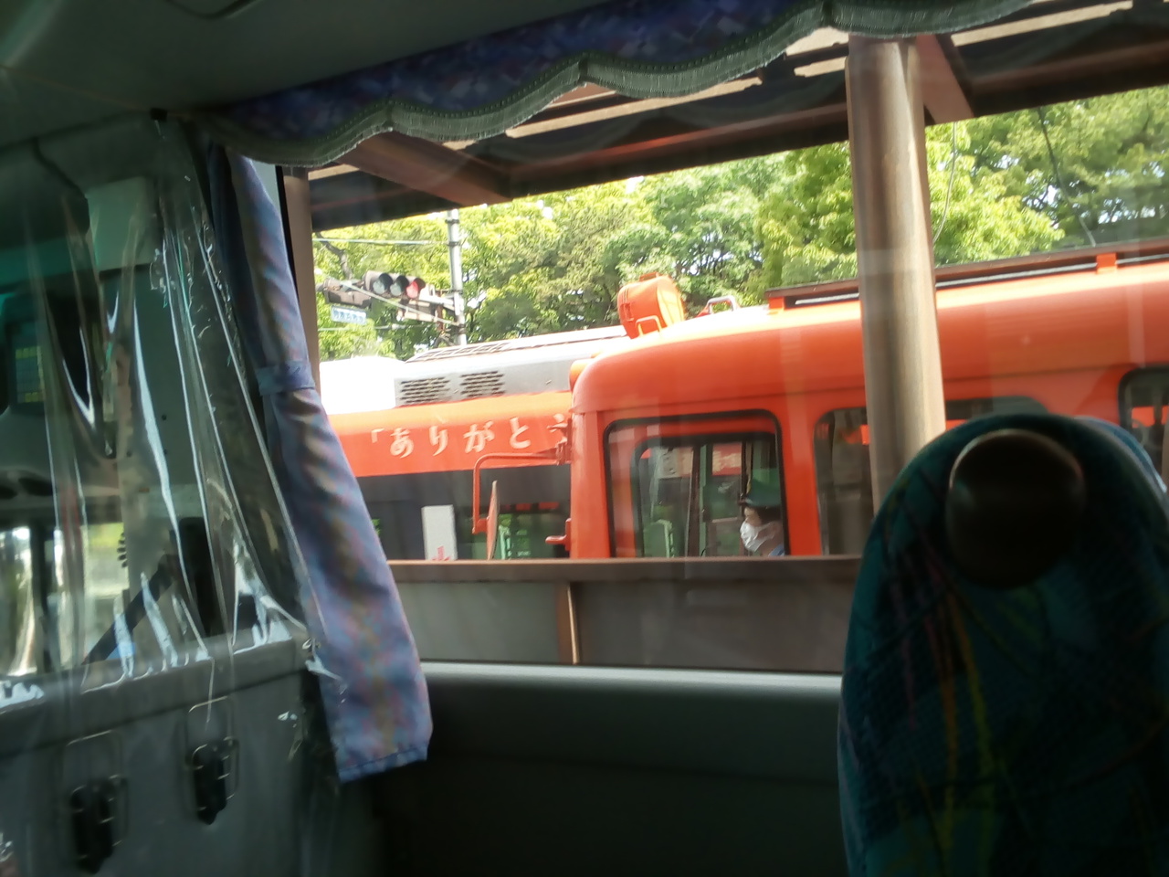 温泉駅直通ではなくて、途中の駅や公共施設の前などでも止まるので、観光客だけでなく、一般の住民の足にもなっています。料金も安くて使い易いです。座席には制限があってロープを張って密にならないようにしています。