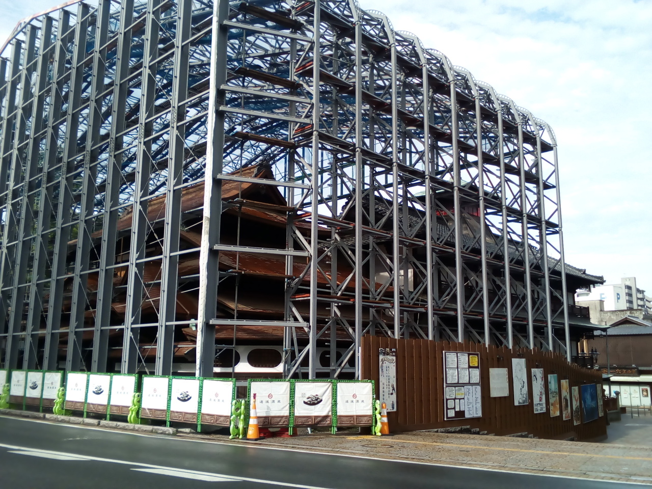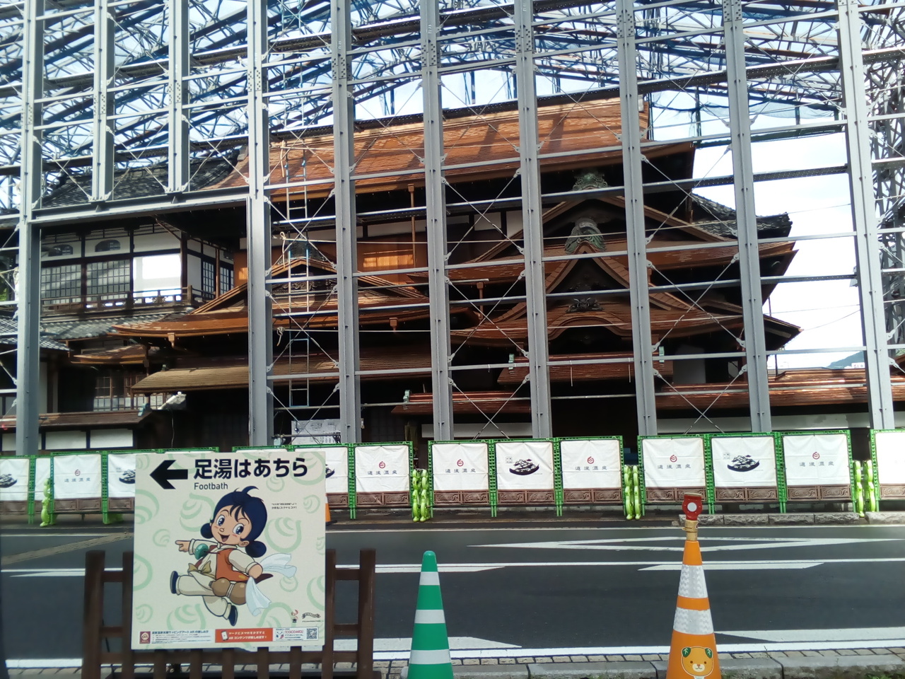 日曜日の朝早かったからか、まだシャッターが閉まっていました。もしかしたらコロナで自粛中だったのかも知れませんが。ここから東側は温泉街になっていて、ホテルや足湯などが立ち並んでいます。大きな駐車場もあります。