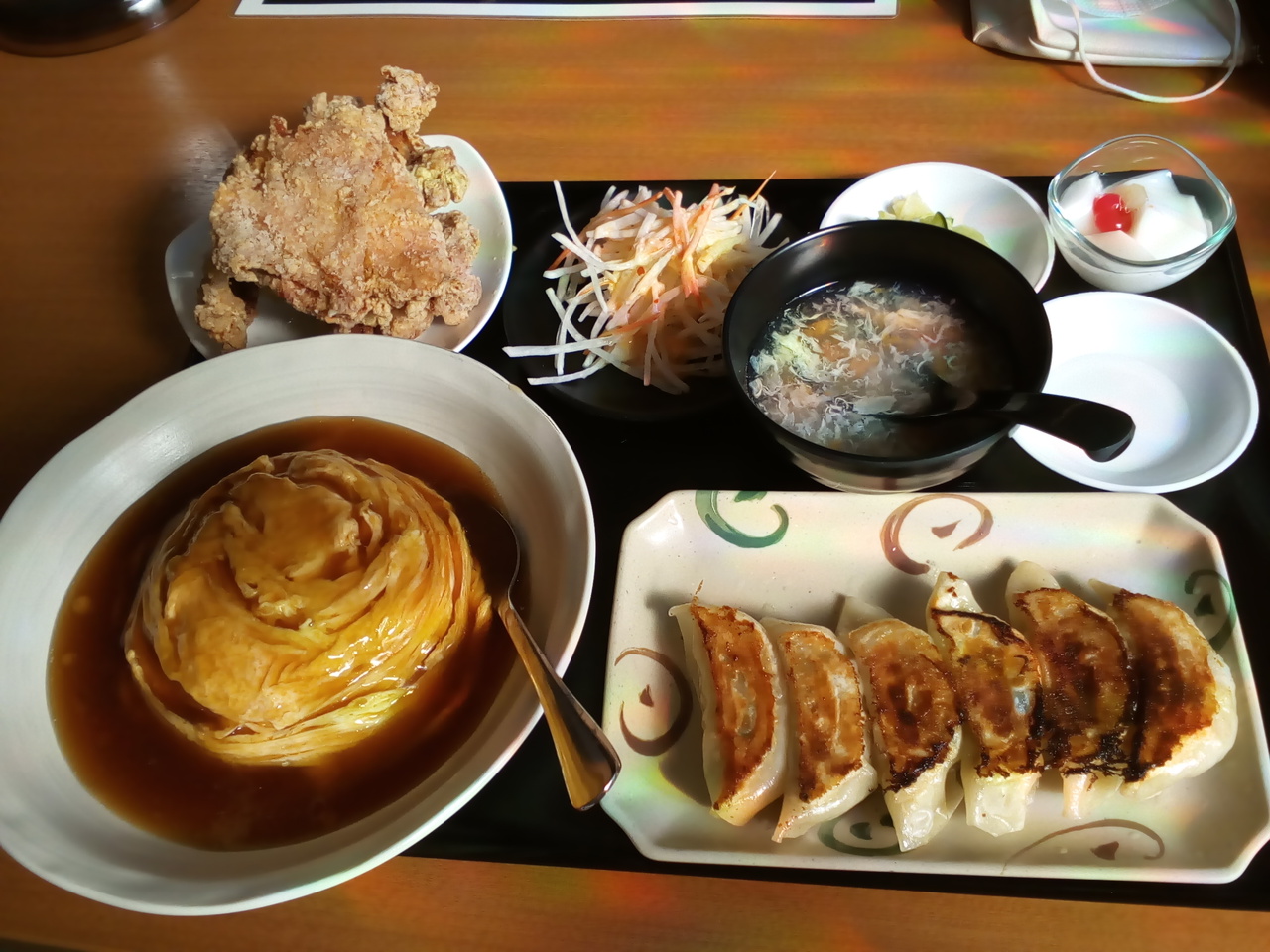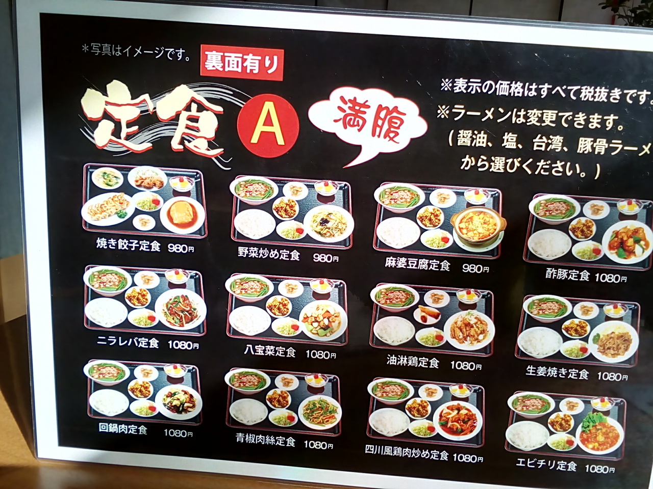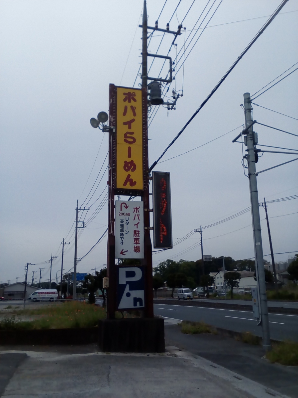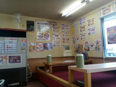 付近に建物が無いので、遠くからでも目に付く看板。駐車場には「200メートル先にUターン路あり」の表示が。中は以外に広くて、カウンター席が殆どですが、テーブル席も4,5席ありました。餃子が肉厚で美味しかったです。