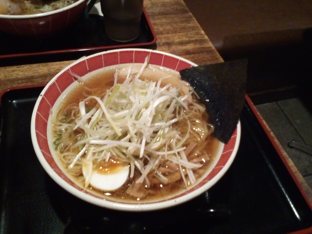 支払いはキャッシュのみ。今回奥の席に案内されて、増築の様子が分かりました。窓や壁を壊さずに庭に延長。昼は何時も満車状態ですが、夜は空席もあります。注文はタブレットで。なんと言ってもお勧めはシンプルに醤油ラーメンです。