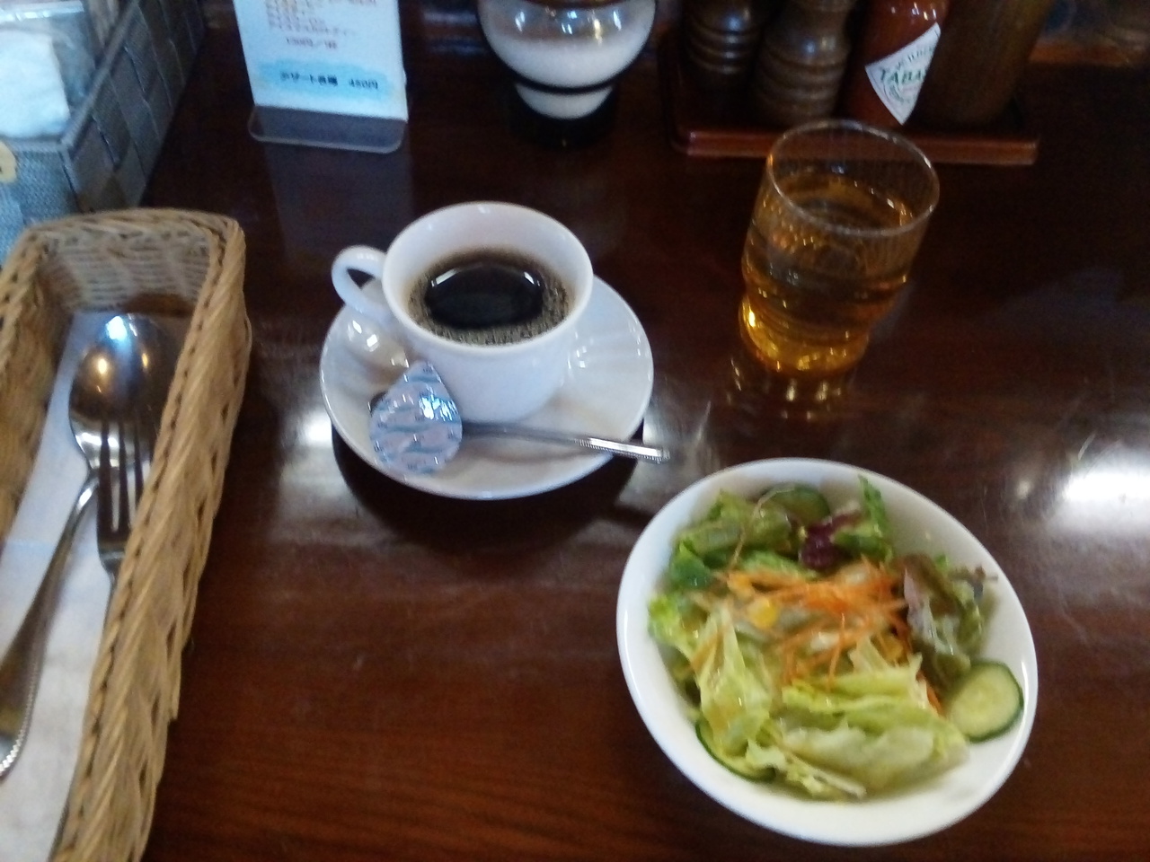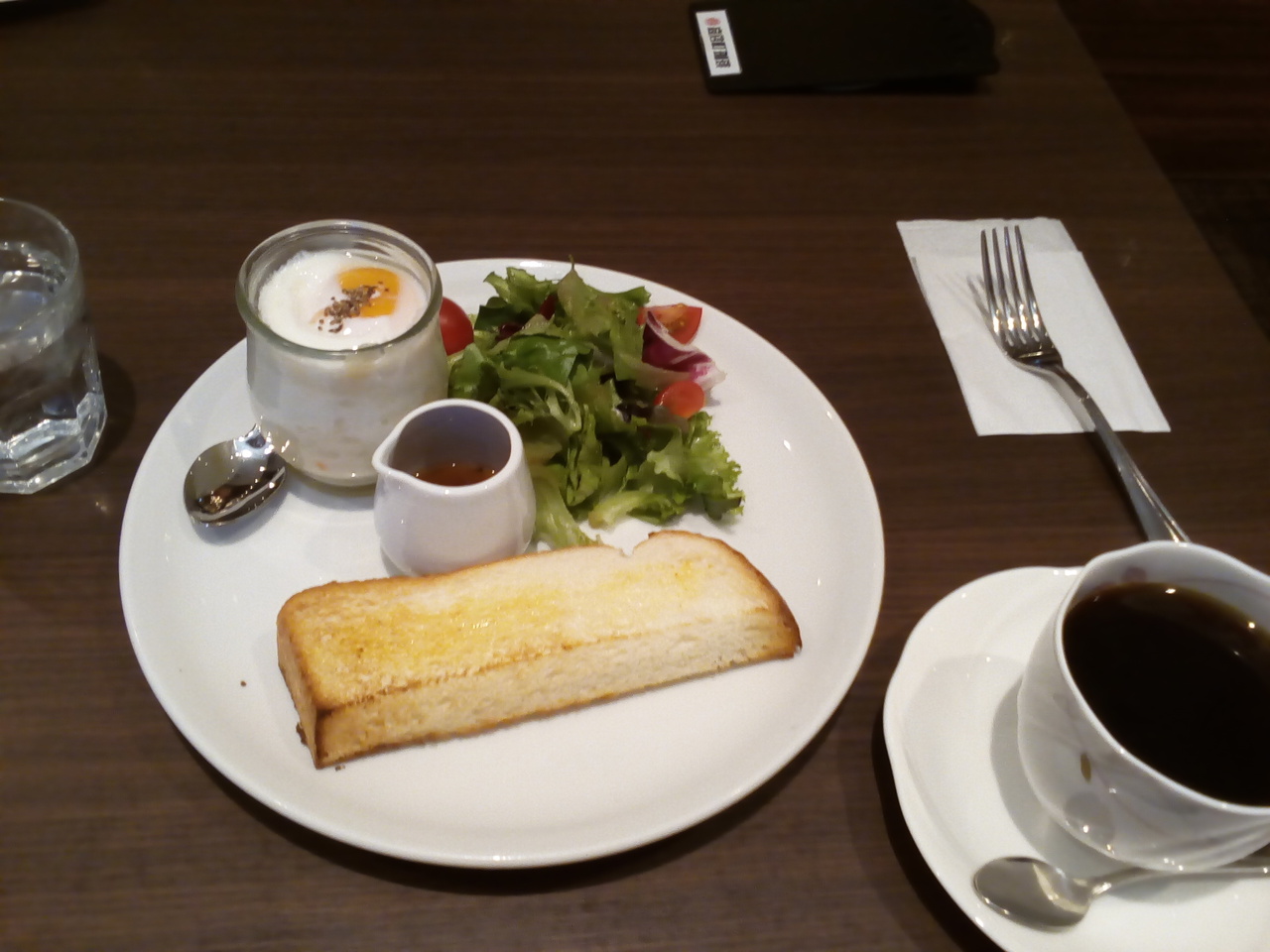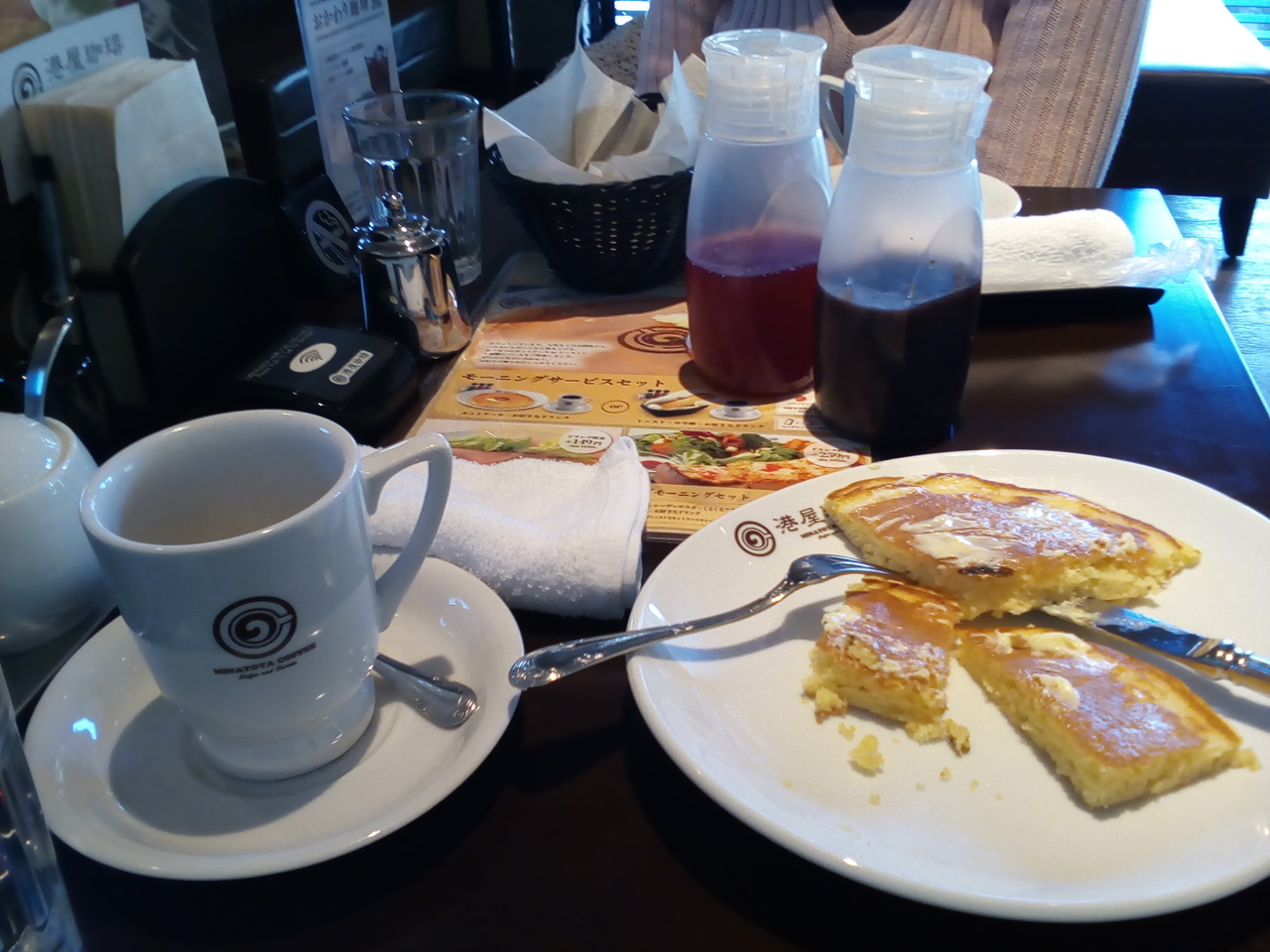 モーニングメニューは4種類。内2種類はとても魅力的です。0円プランはコーヒー、トースト、ゆで卵は何処のカフェも同じですが、パンケーキプランがどうもいただけません。今までに2回食べましたが、半分で飽きてしまい完食出来ていません。