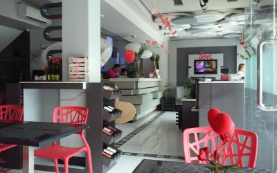 本当に町中で高いビルディングに囲まれているので分かりにくいです。車の場合は駐車場がビルの裏側にあるので、ぐるっと回らなければなりません。前の道路は一方通行だから、一度出ると回り込んで帰って来なければなりません。