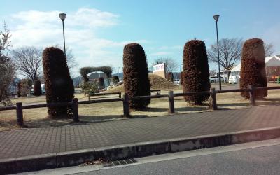 国道140号を走行中に「道の駅・はなぞの」の看板を見つけて、トイレ休憩を兼ねて寄って見ました。ところがなんとも様子がおかしい? 駐車場に車は止まっているものの、肝心の建物が見当たらない。トイレを済ませて辺りを見ると、グレーのネットのシートに囲まれた工事現場が。芝生の庭の隣でテントを張って物産の販売が行われていましたが、なんとも寂しい雰囲気でした。