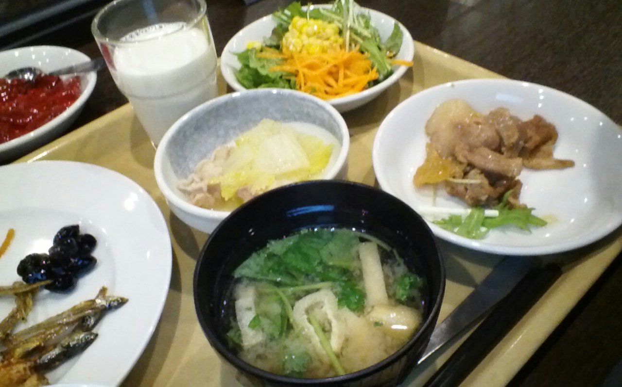 素泊まりで予約しました。チェックインの時に「朝食付きに変えられますよ」と言われましたが、朝早く出たかったので断りました。夕飯は1階のレストランで食べられます。メニューも豊富で、地元産の食材を使った料理が食べられます。平日のお風呂は男女の入れ替えがないので、女性は2階の人工風呂(小浴場)だけだったのが残念でした。