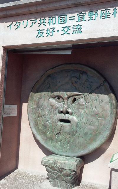 漢字だけだったら絶対に読めない難しい地名です。目を引くのは、正面入り口近くに、ローマの「真実の口」があることです。イタリアと友好関係があるそうです。季節限定の「ハロウィンサンデー」をおやつに食べました。