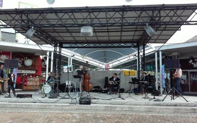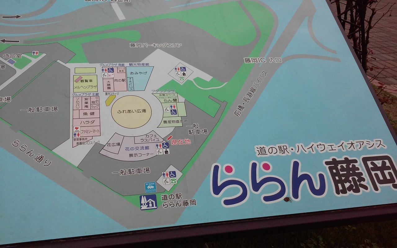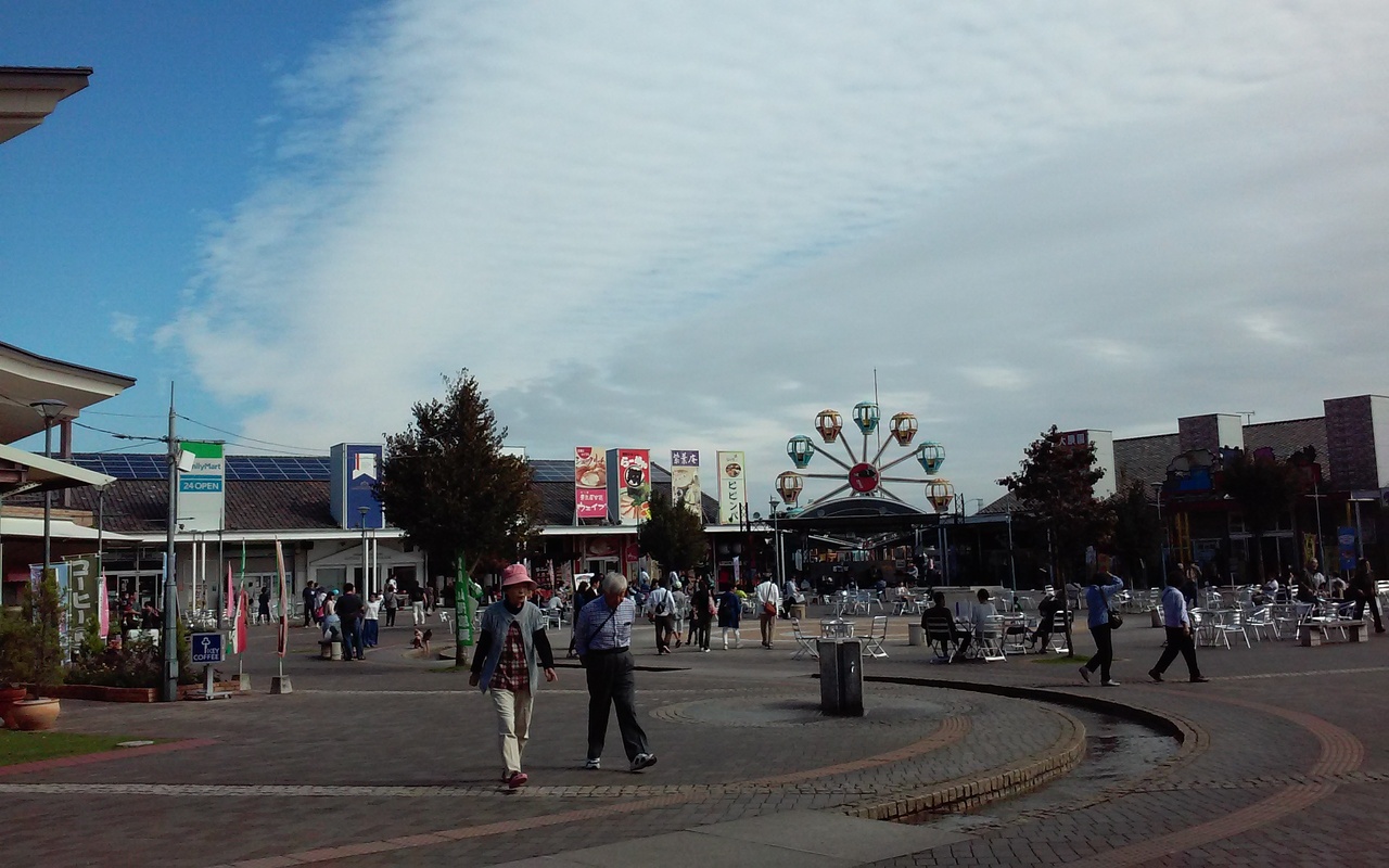 道の駅の中央には広場があって、夏には噴水のサービスがあります。野外ステージでは日曜祝日にアマチュアバンドのライブもやっています。奥のほうに目を向けると、小さな観覧車が回っていて、小さい子連れにもいい場所です。