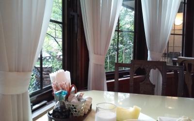 私は朝が早かったので、ランチ目的で入りましたが、連れは遅い朝ごはんだったので、「まだお腹すいてない」とデザートを注文しました。どちらも洒落ていて量的にもお得でした。店の中から通りを歩く人が眺められて、のどかな雰囲気でした。