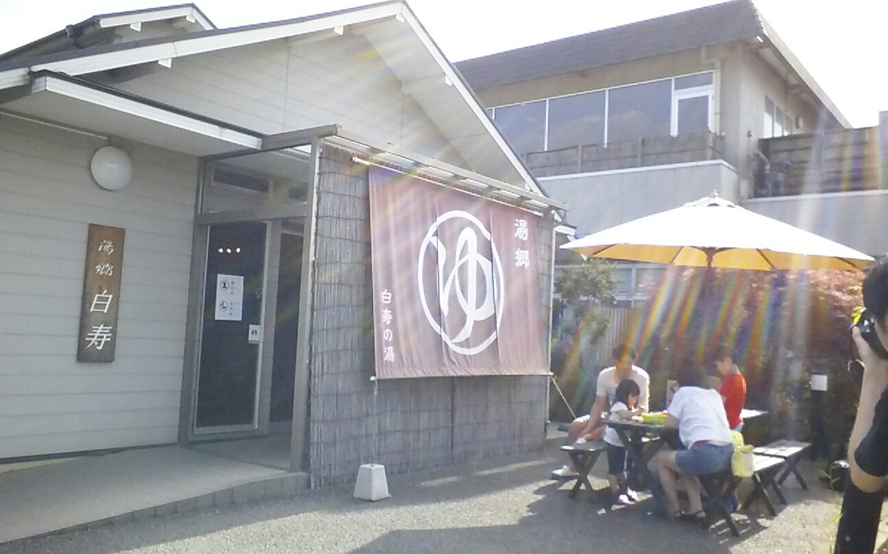 群馬・藤岡方面に行く途中に寄りました。川向こうは藤岡市です。ここのお湯は埼玉・大宮・鉄道博物館の「おふろカフェUtatane」にも運ばれていて、地元では有名です。特に内風呂の床はお湯の成分で、棚田のようになっていて見事です。