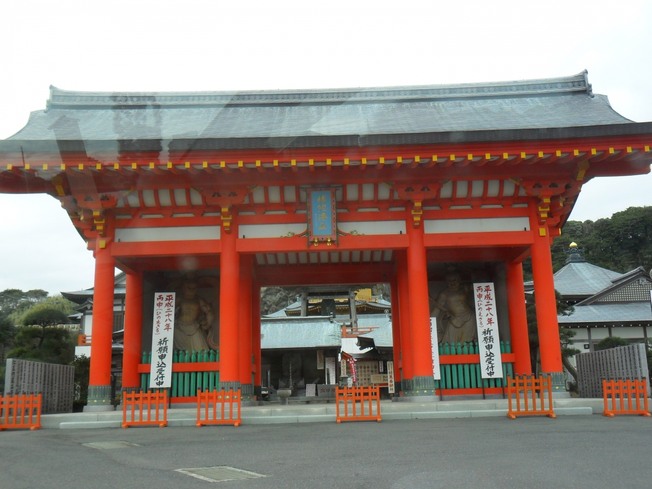 房総半島一周の途中で寄りました。銚子を出て、九十九里浜を南下する時に見つけました。遠くからでもかなり目立つ建物なので、始めは何だろうと思いましたが、近くまで行ってお寺と分かりました。地元の方らしい人がお参りに来ていましたが、土曜日なのにひっそりとしていました。