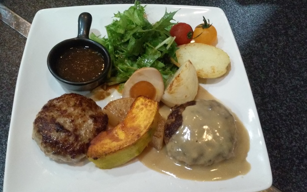 - 深谷牛。豚、チキン、羊肉のハンバーグとステーキ。