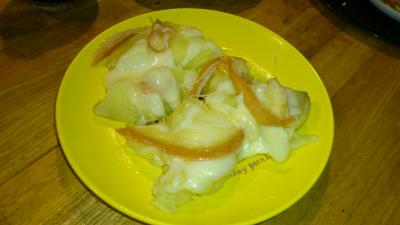 じゃがいもはとても甘く、その上にチーズがのり、コショウも少しかけて食べます♪