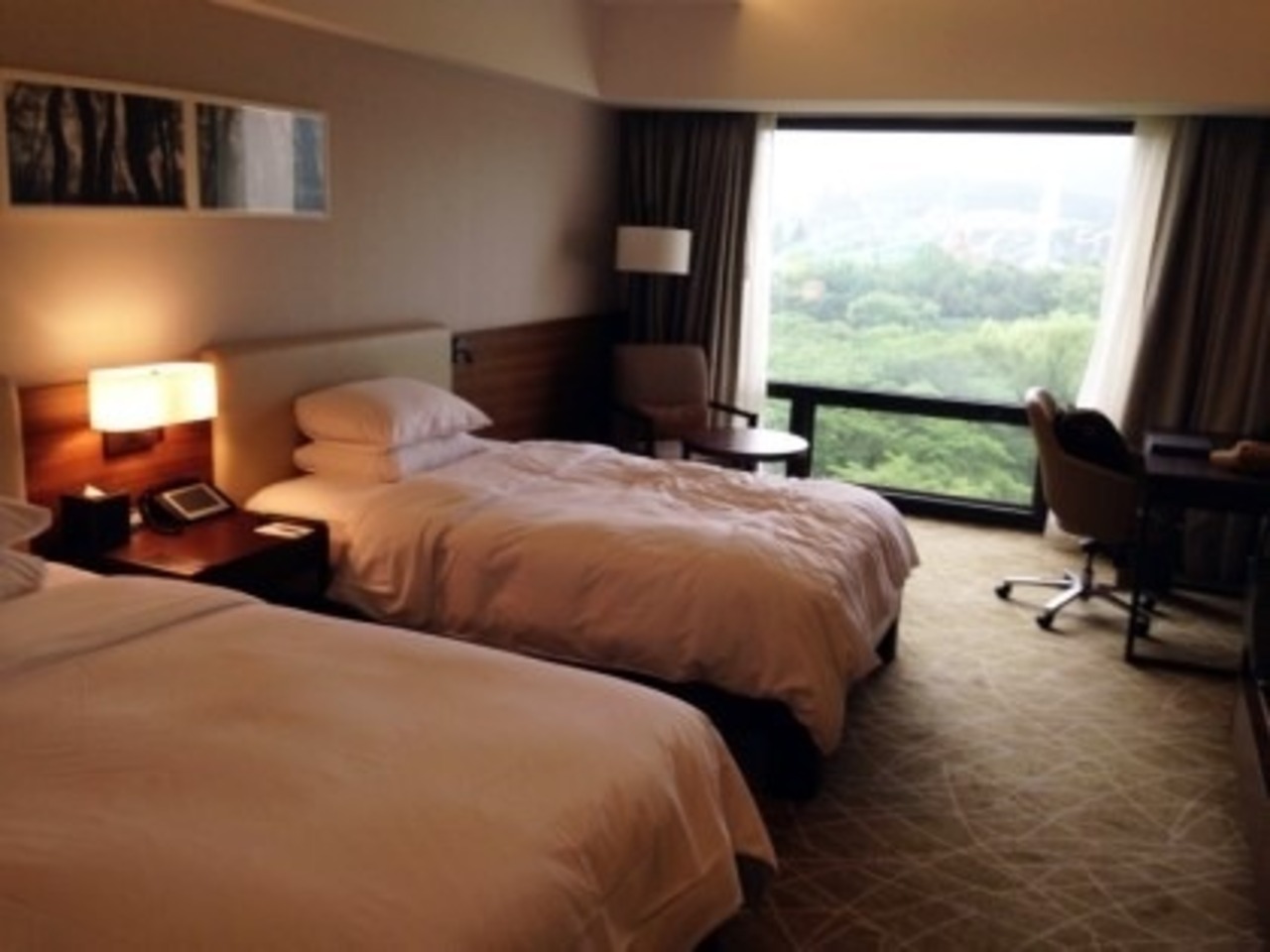 3ベットの洋室の広い部屋で子供とベットやソファーで遊んだり楽で良かったです。内風呂は広く気持ちいいですが、外の景観は意外に目に入らないし、はっきり見えないし。夕飯の食事はよくも悪くもなく普通のレベル。むしろ朝ごはんのバイキングが美味しく満足でした