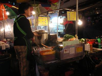 南大門市場6番GATE から入って2軒目の屋台は、日本語の上手なお兄ちゃんが居ます。屋台の経営者の甥っ子だそうで、愛想はいいです。 ですが、ボラレます。屋台以外のお店は 安くておいしいのですが、この店は要注意ですよ。屋台の焼き鳥などは、串にささって生で置いてありますが、それをタマネギなどの野菜と炒めるので量は増えます。雰囲気をちょっと味わうだけならいいかもしれませんけどね。