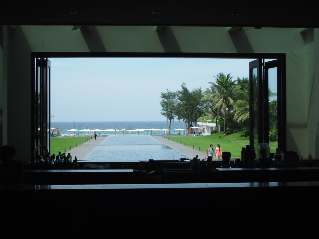 プールより大きな池?があります。ロビーにあるバーはお昼でも、夜でも楽しめると思います。