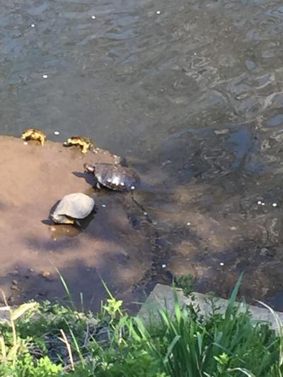 毎年桜見物で大賑わいの名所。川沿いに遊歩道がずっと続いているので歩きやすい。川に覆いかぶさるように桜が咲き、亀や鳥もいます。屋台もたくさん出ていますが、大人数での宴会ができるほどのスペースはありません。ゆっくりと歩きながらの花見にピッタリです。