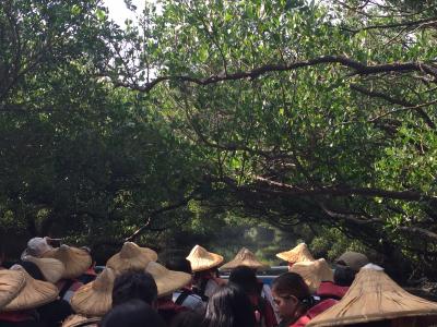 マングローブの緑のトンネルを舟でくぐることができます。バスの便が少なく、観光循環バスの始発便が到着するのは10時くらいになります。その頃には大陸の大型観光バスが到着するので大混雑になります。タクシーか自転車を使って朝一番が狙い目です。