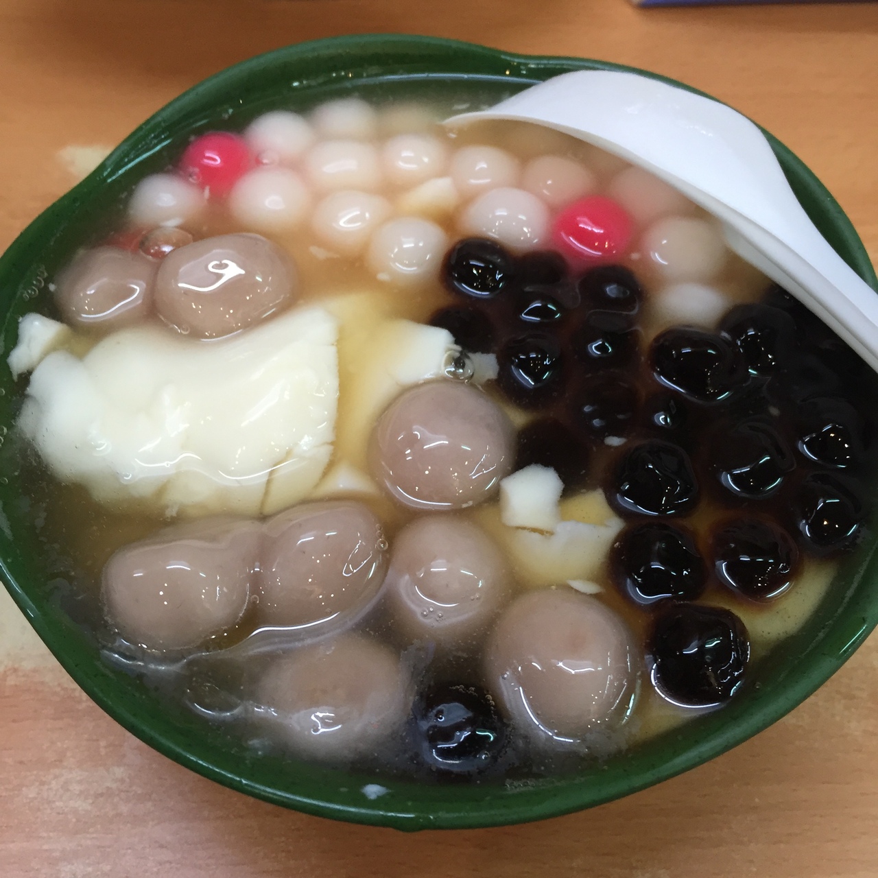 オヤツとは思えない大きさの入れ物にこぼれそうなくらい盛られています。タピオカや団子など具自体もごく薄くですが甘く味がついているのでサッパリしているのに満足感があります。豆花も仙草ゼリーもトゥルントゥルンでクセが無いので食べきってしまいます。