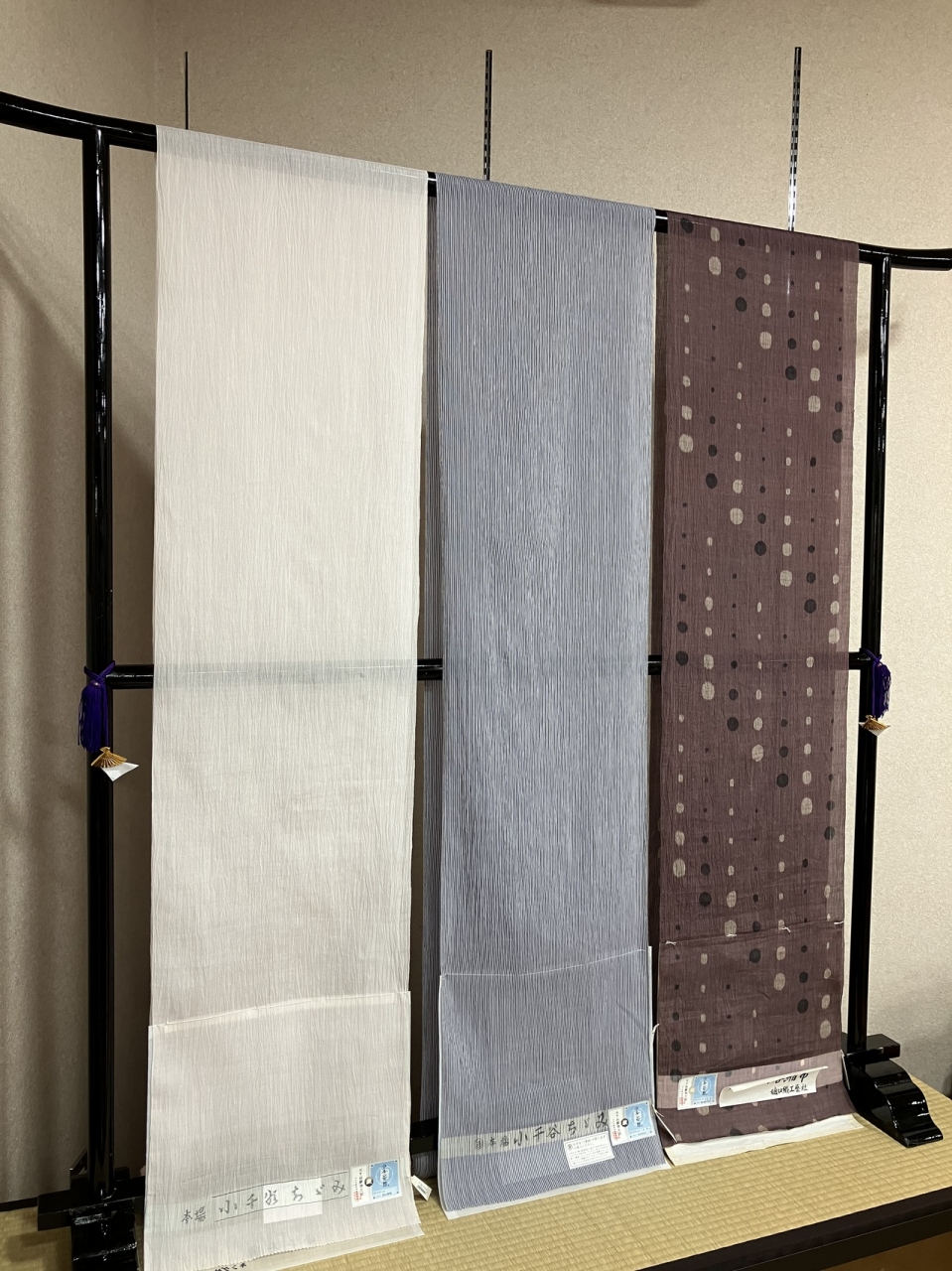 サンプラザ内にある匠の座は、越後上布と小千谷縮の展示販売所になっています。反物はもちろん、小物雑貨やハギレもありました。アイデア商品のアクセサリーもあり、良心的なお値段。