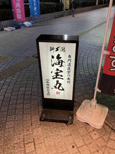 長岡ターミナルホテルの地下にある回転寿司です。定食やお酒のおつまみも充実しているようですが、祝前日の19時過ぎには牡蠣焼きなどの一品料理は売り切れでした。