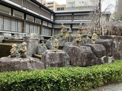 街中に突然現れる立派な山門を潜ると、落ち着いた雰囲気が漂っていて、可愛らしいお地蔵様や十六羅漢が笑顔で出迎えてくれます。