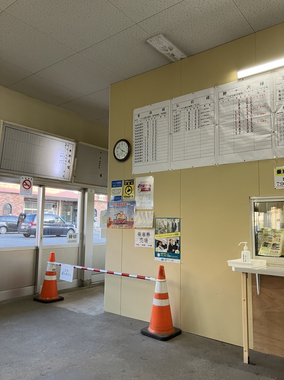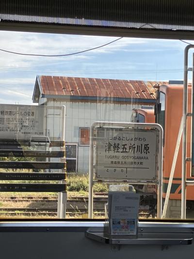 大雨の影響で五能線の岩館~鰺ケ沢駅間が運転見合わせ、代行輸送、運転区間は本数を減らしての運転になっていたため、青森駅前から五所川原まで路線バスを使いました。1時間半に1本くらいの間隔で、津軽鉄道との繋ぎもあまり良くありませんが、空いているので座って1時間弱、景色を楽しみました。