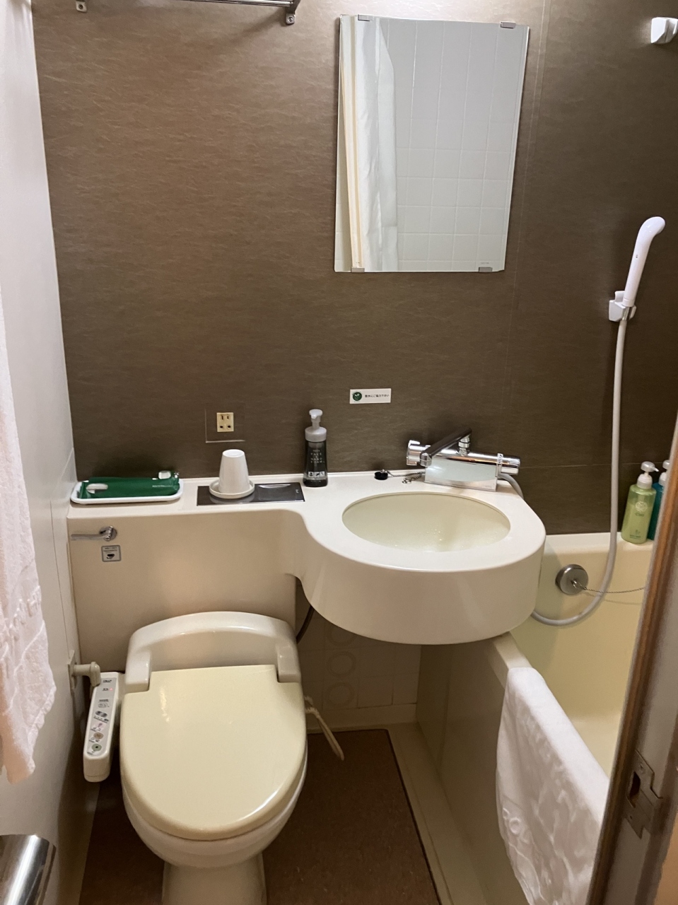 喫煙室、無料wifi、温水洗浄便座、空気清浄機、湯沸かしポット、部屋着、スリッパ、ドライヤー、衣類消臭スプレー、大浴場や朝食など、おっさん(ババア)心を満たすものは全て揃っている。