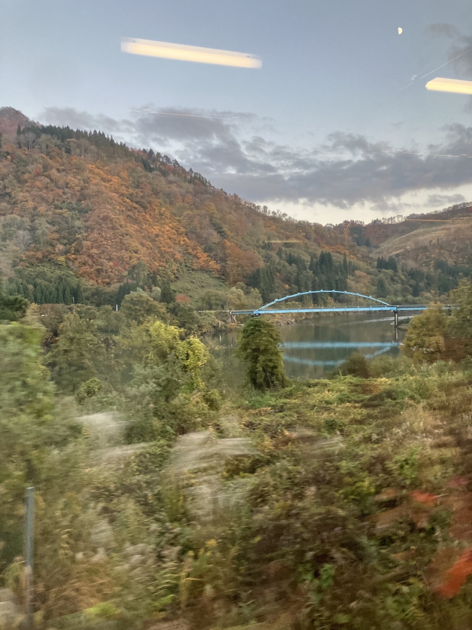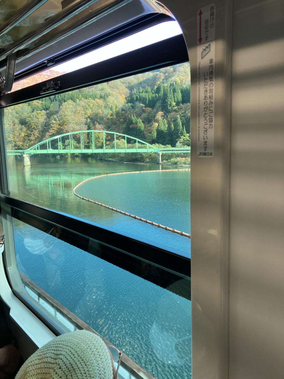 新潟側から只見線に乗り、開通区間に入ってから会津大塩駅で降りると、下りで引き返す間に小一時間の時間がとれます。立ちっぱなしで硬直した脚を歩いてほぐすにはピッタリの場所。