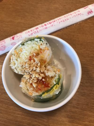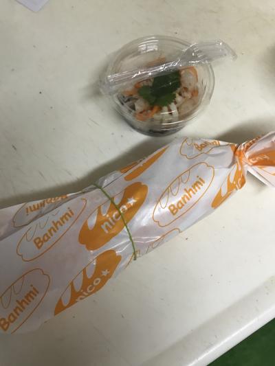 ベトナムハム&レバーペーストと牛焼肉のハーフ&ハーフのバインミーと春雨サラダをテイクアウトしました。オーブントースターでチン!